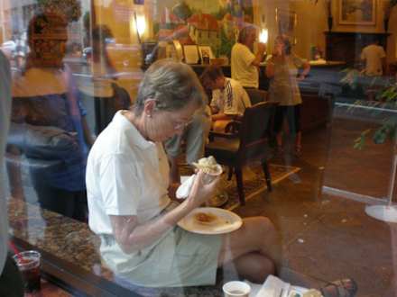 Frühstück auf der FensterbankDie Sitzmöglichkeiten sind etwas beschränkt aber das kann durch Improvisieren ausgeglichen werden.