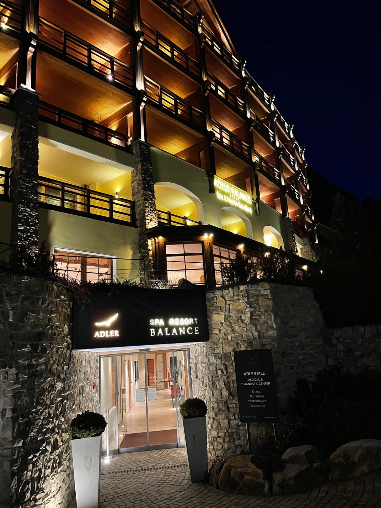 Das Hotel Adler BALANCE bei Nacht