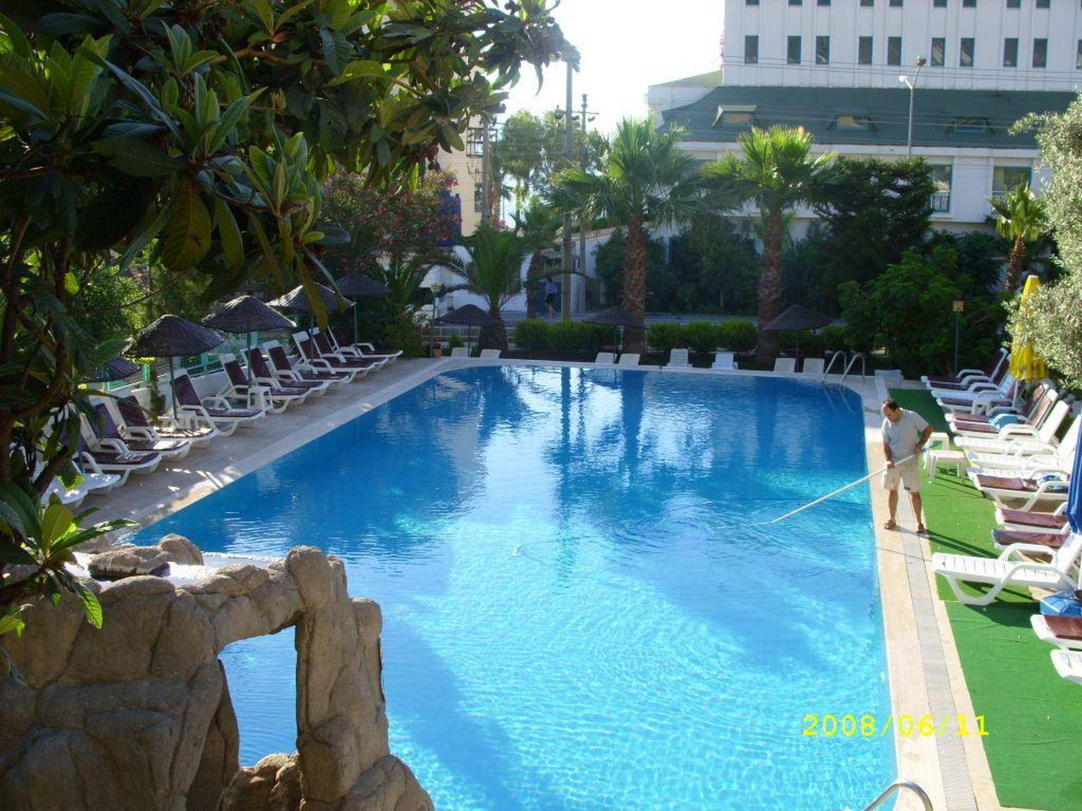 Widok z tarasu przy resreuracji na hotelowy basen