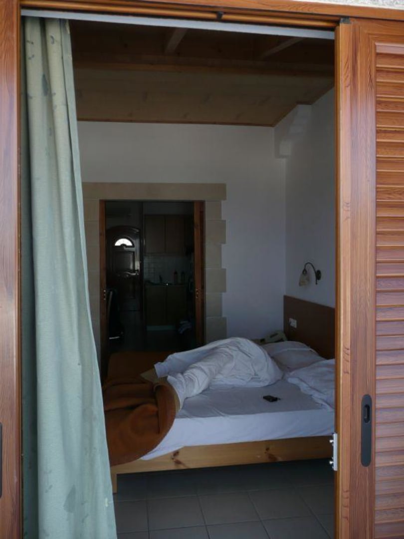 Blick ins Schlafzimmer von der Terrasse aus.