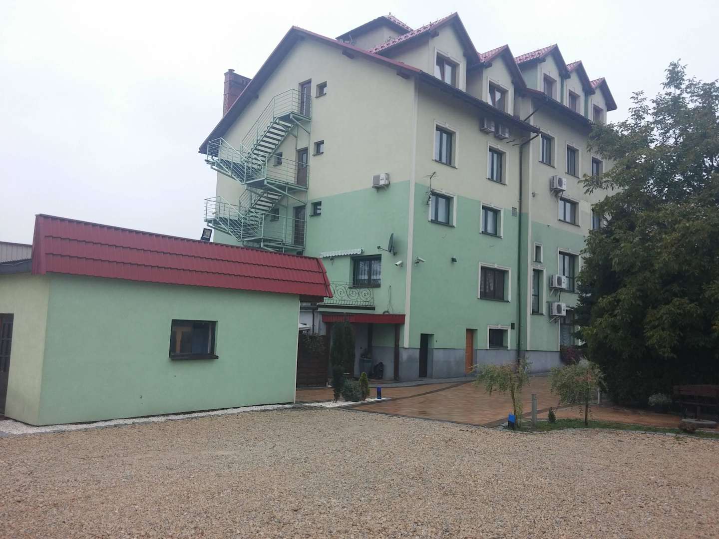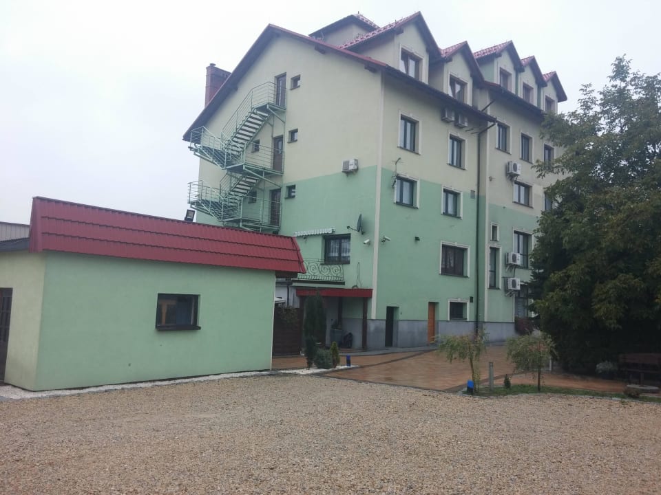 Blick auf das Hotel vom Parkplatz aus
