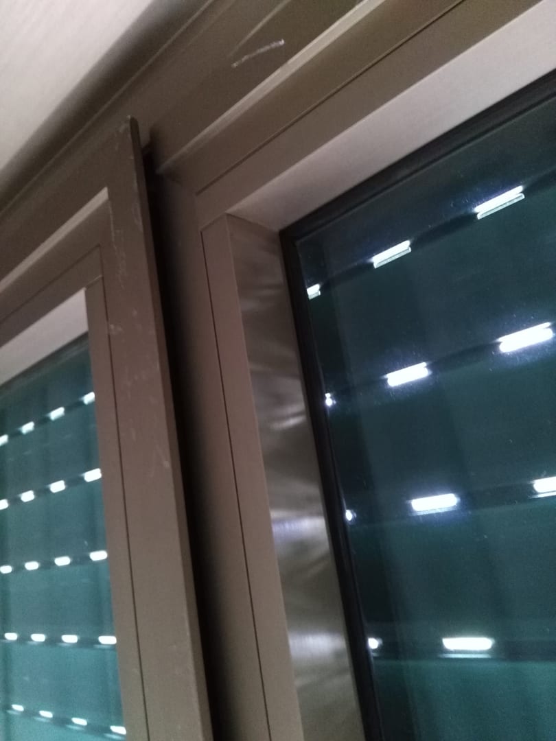 Geschlossene Balkontür. Oben einen Spalt von 1 cm oder mehr.