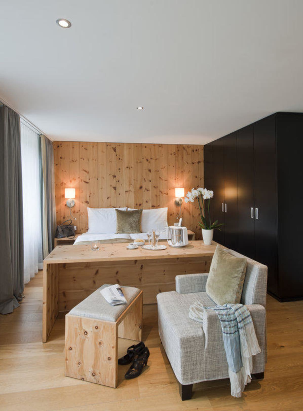 Zimmer mit Arven-= Zirbenholz
