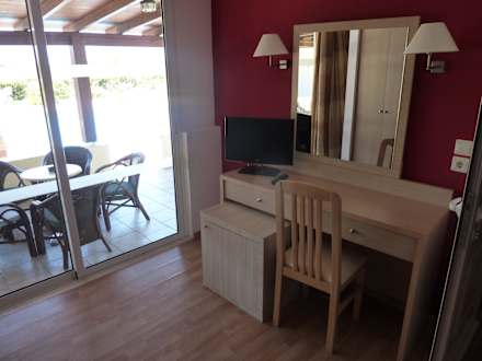 Schreibtisch mit Fernseher im Schlafzimmer