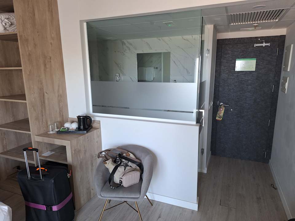 Blick vom Zimmer zum Bad