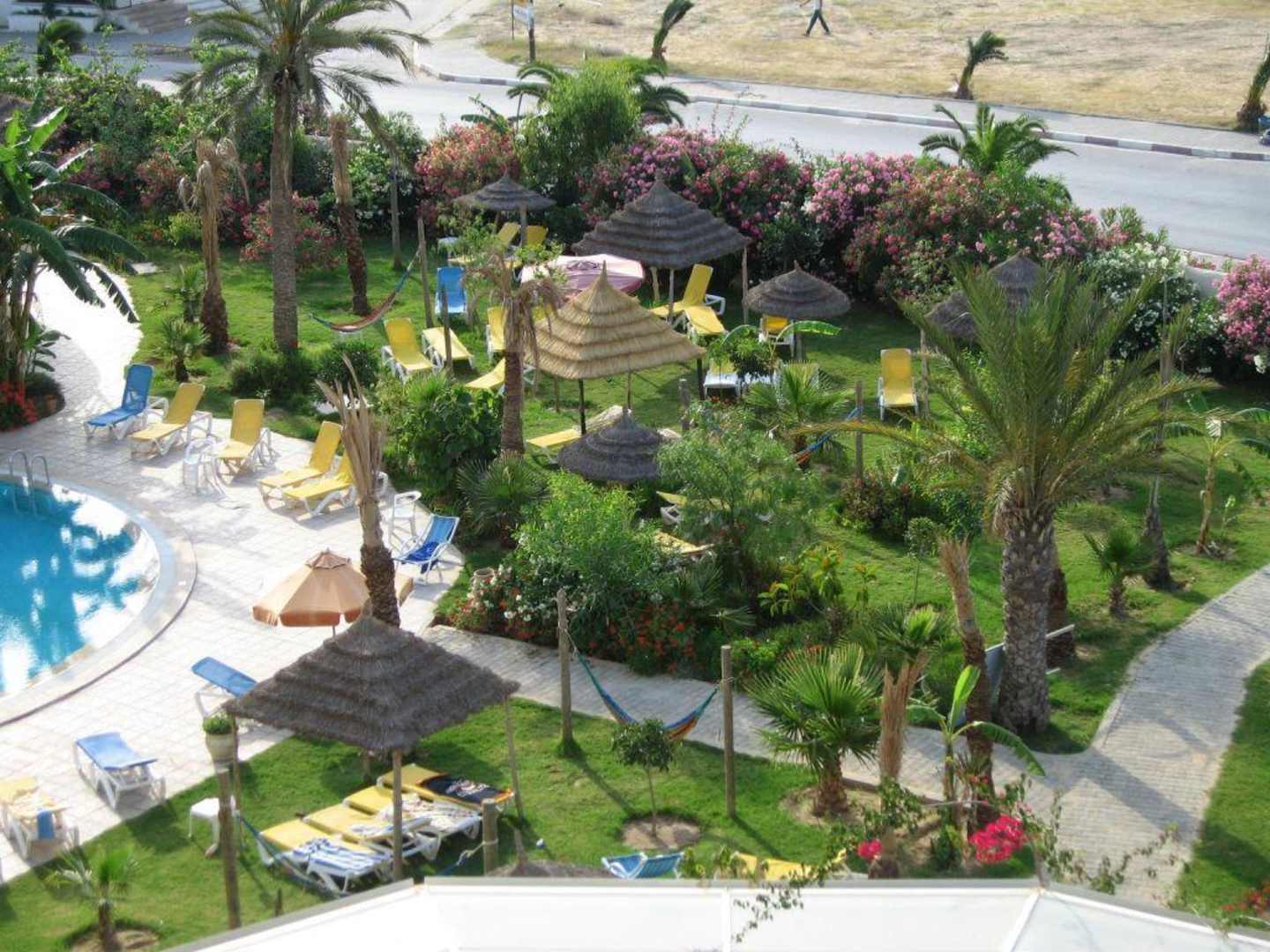 Ausblick auf den Pool mit Liegefläche