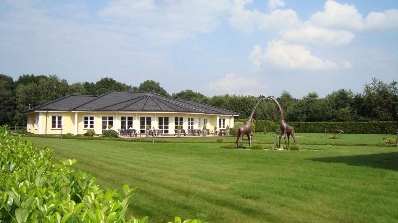 Blick auf das Restaurantgebäude mit Terrasse