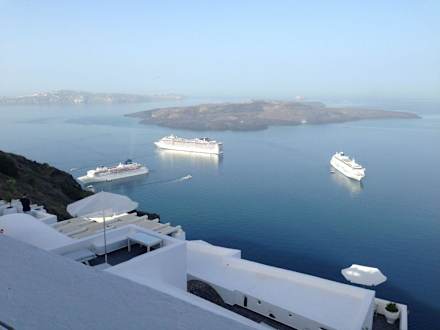 Kreuzfahrtschiffe, Blick von Agali Houses