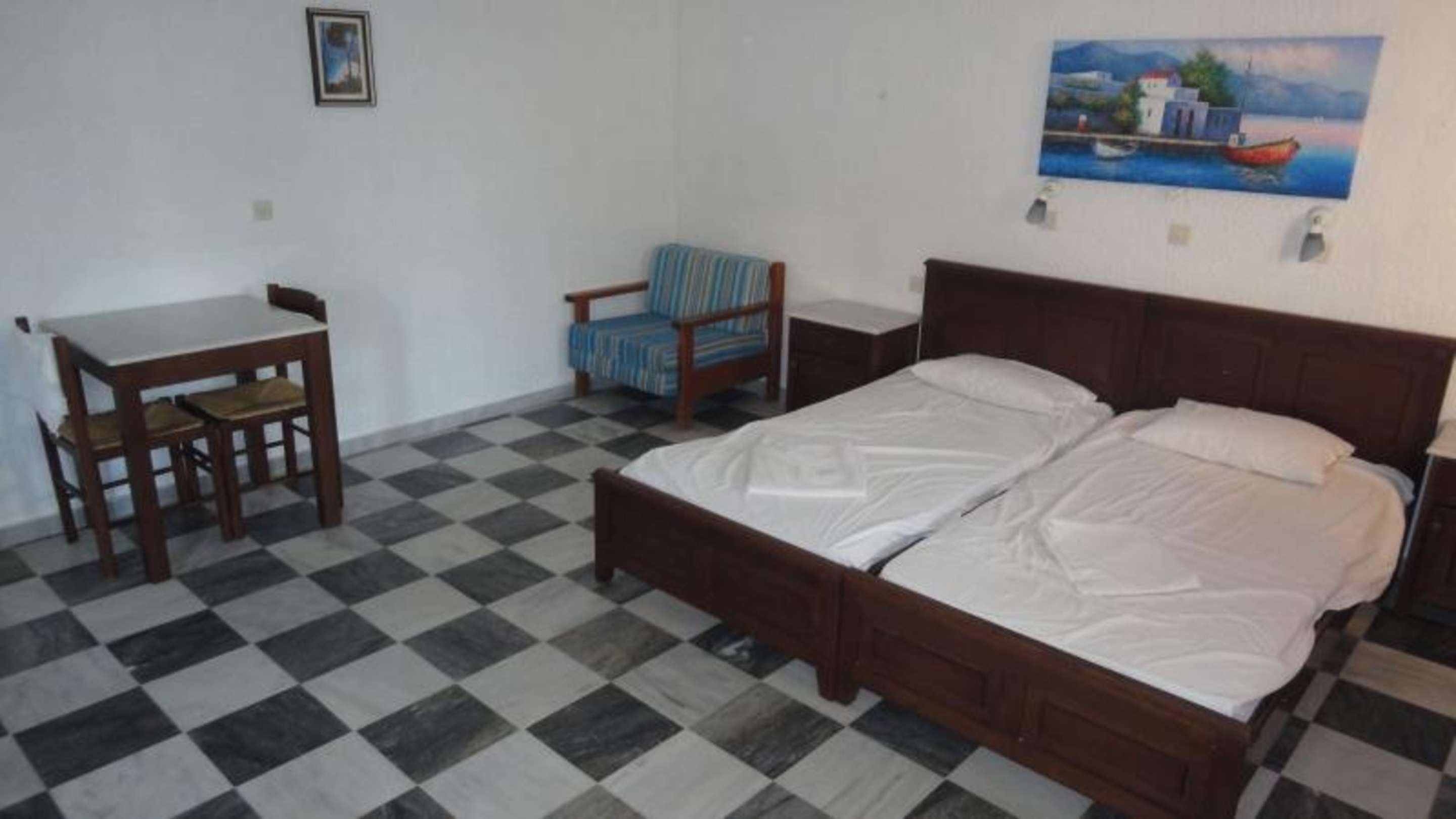 Bett, Tisch, Stühle