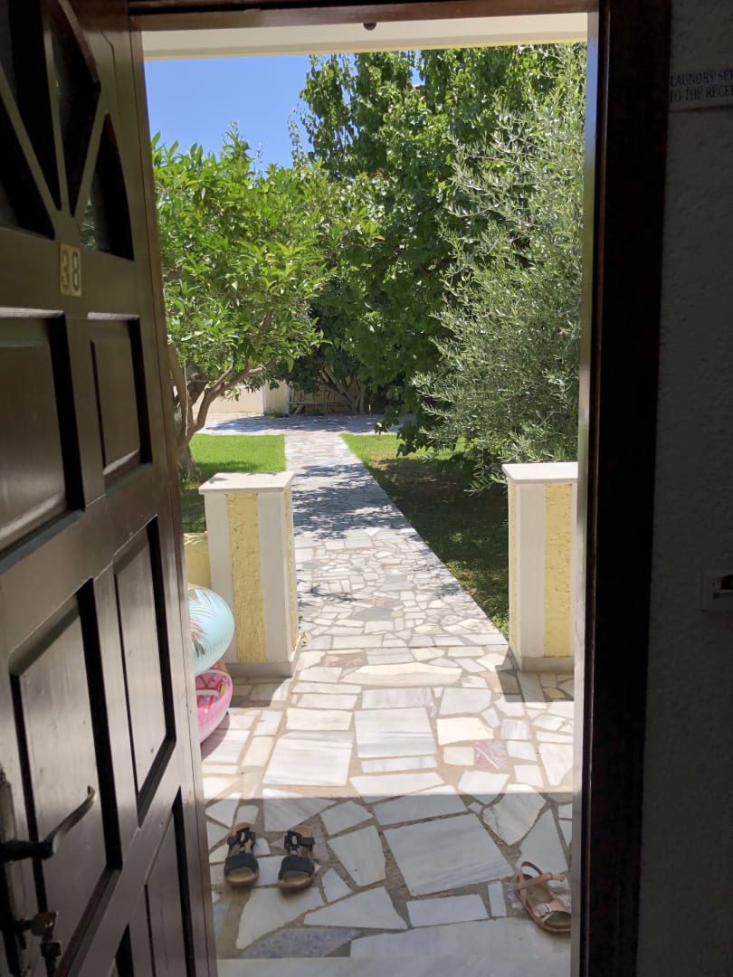 Eingang mit Blick auf grüne Anlage