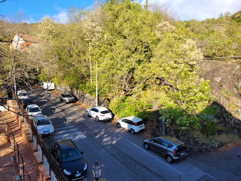 Ausblick vom Balkon zur Straße