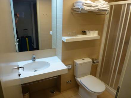 Bad im DZ mit Zustellbett und Parkblick