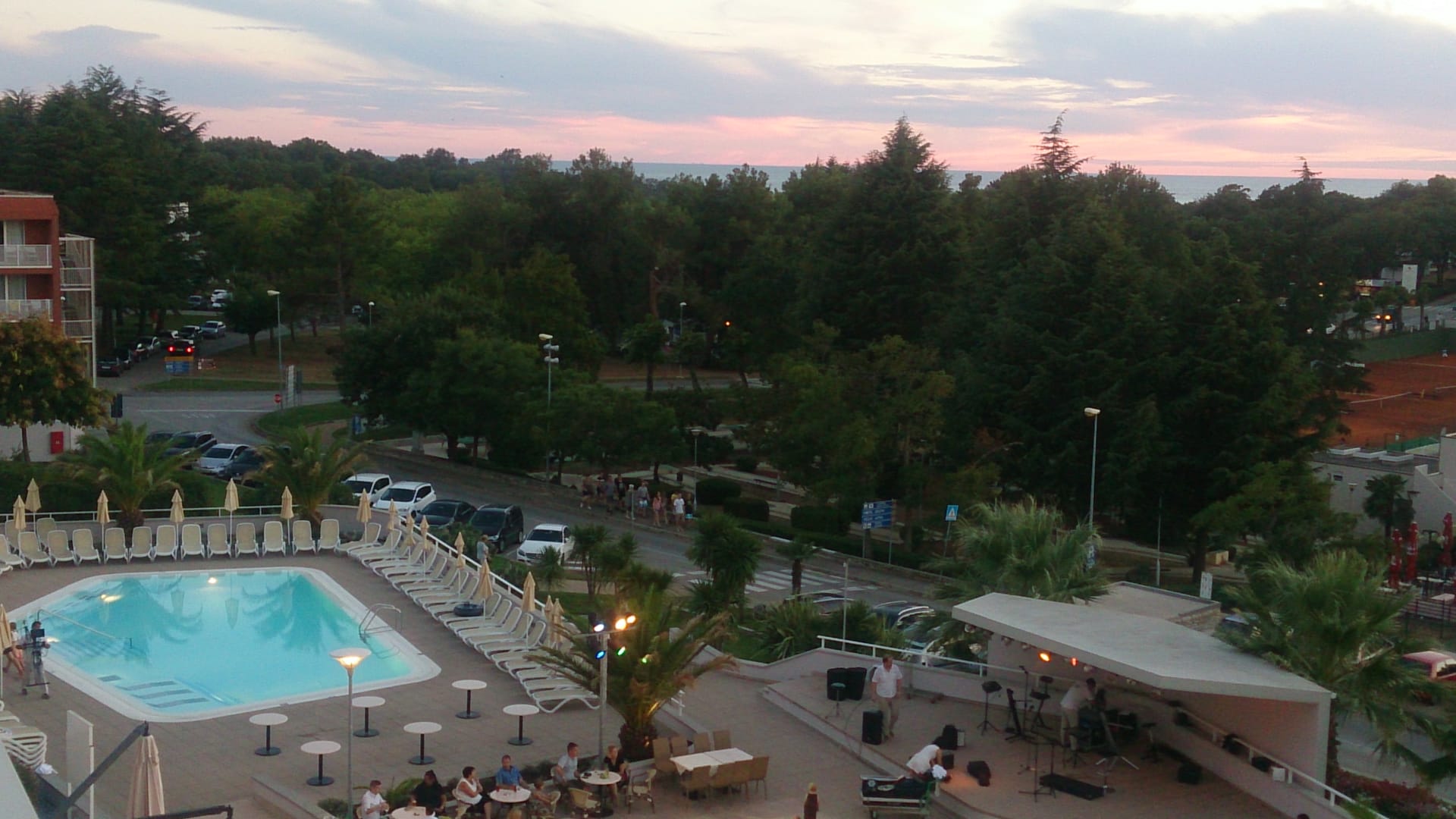 Der linke Pool neben Poolbar und der kleinen Showbühne vom Hotel