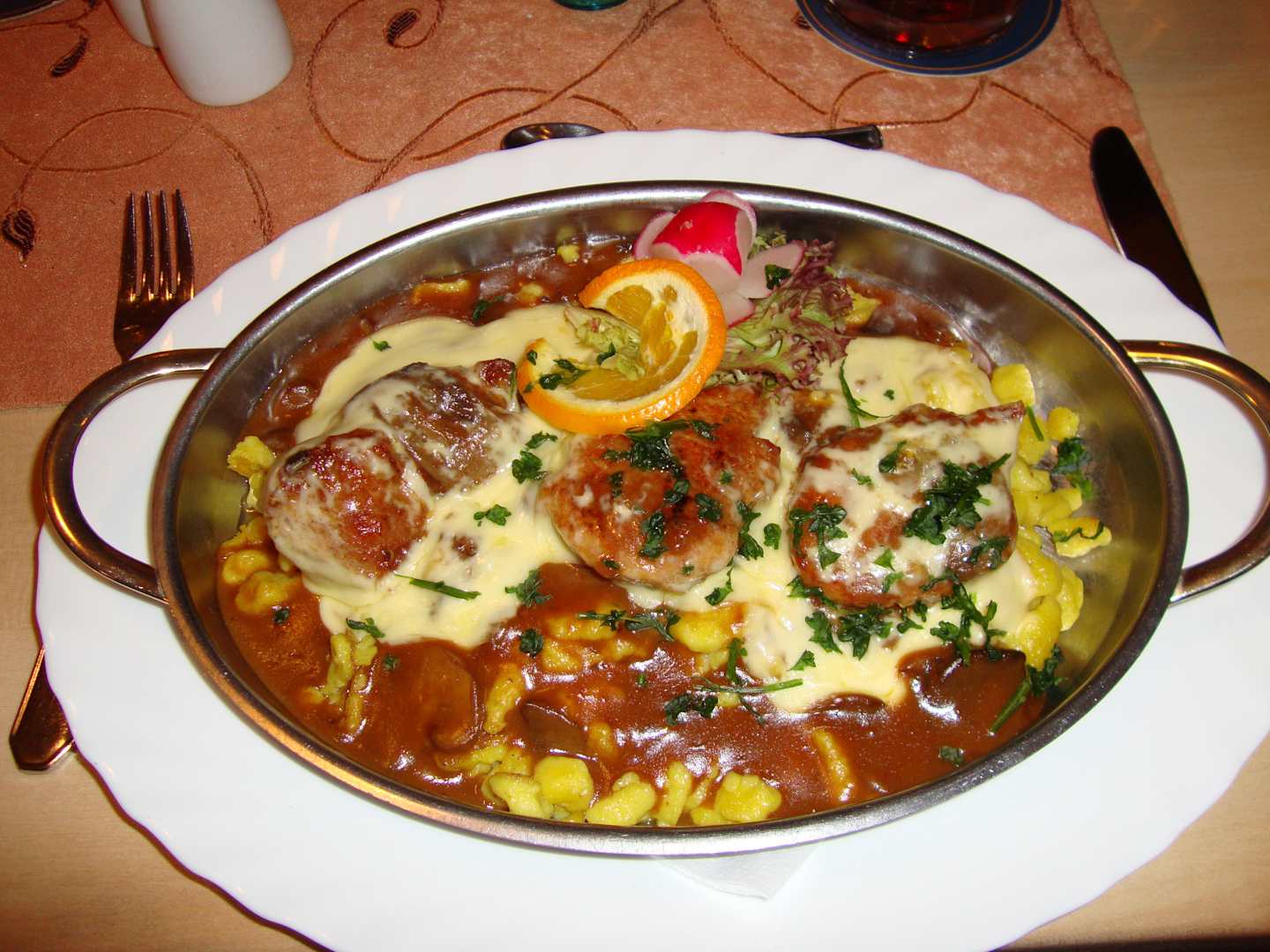 Morgens und Abends reichlich, satt und sehr lecker.