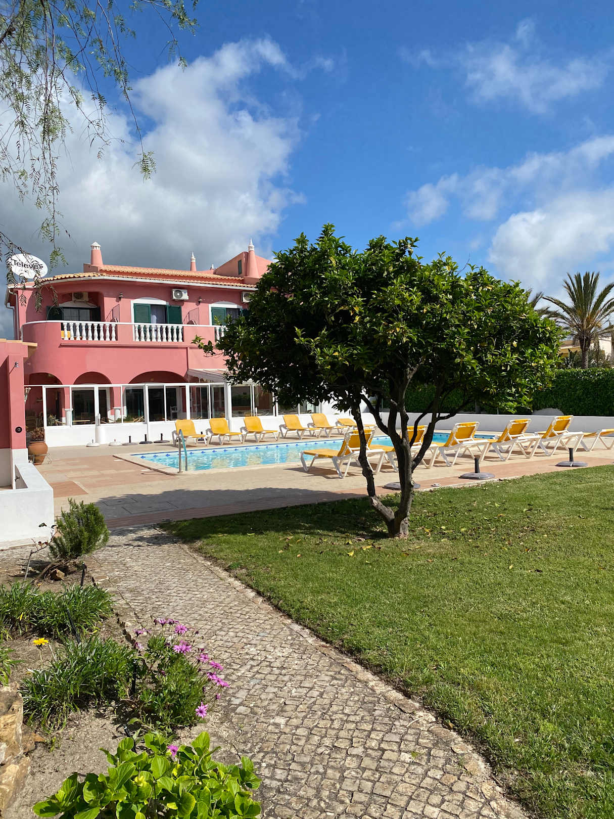 Blick auf das Haupthaus mit Garten und Pool