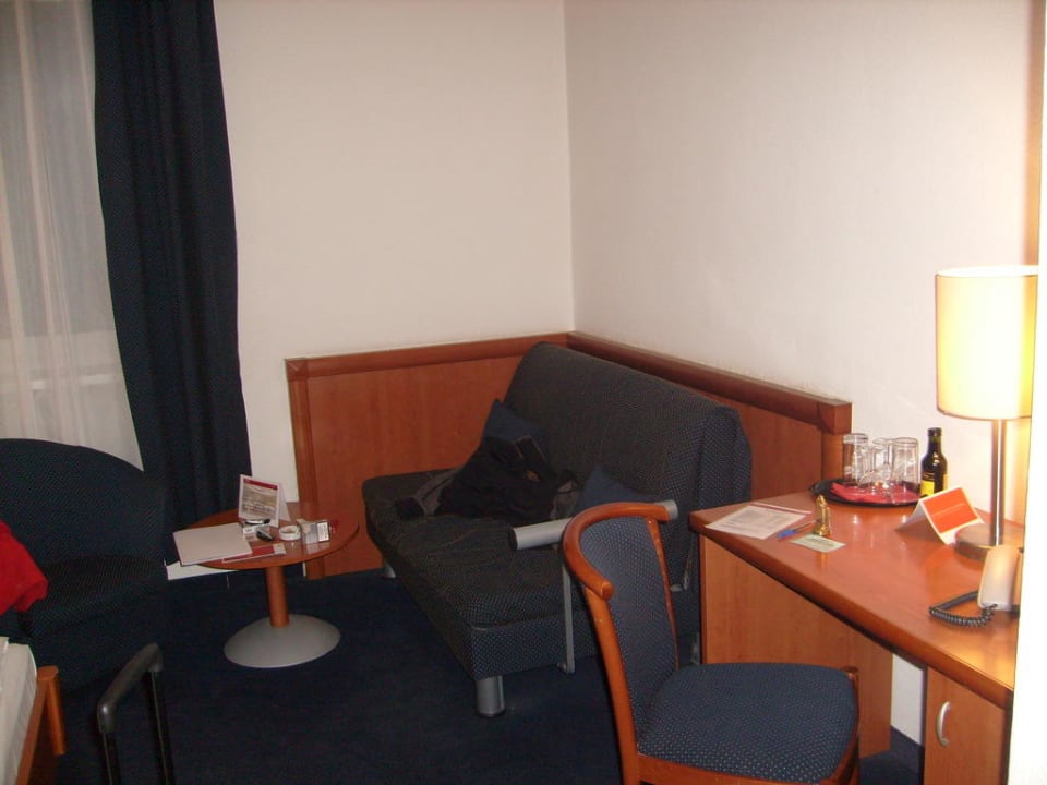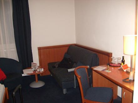 Sitzecke im ZimmerHier ist die Couch zusehen, die man zu einem zusätzlichen Bett umklappen lässt.