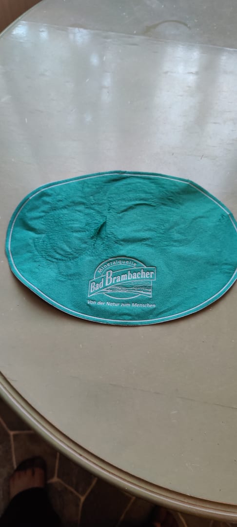 Schmutzige Serviette, auf der Trinkgläser standen, sehr unhgienisch.