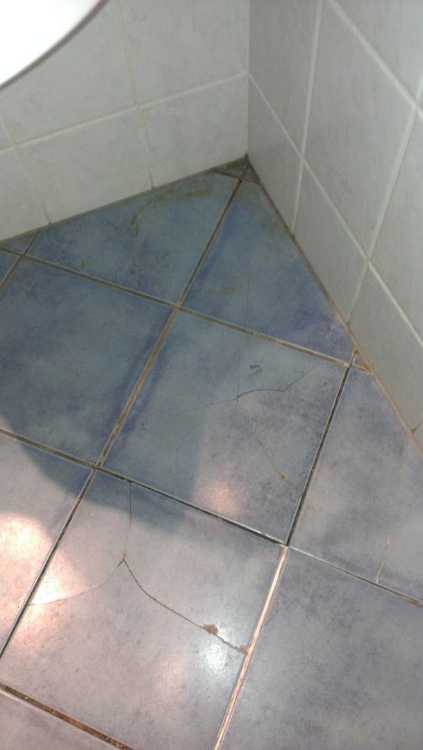 Boden im Bad!Kaputte Fliesen und Dreck, der schon lange da ist! Schnittgefahr! Bloß nicht ohne Schuhe betreten!