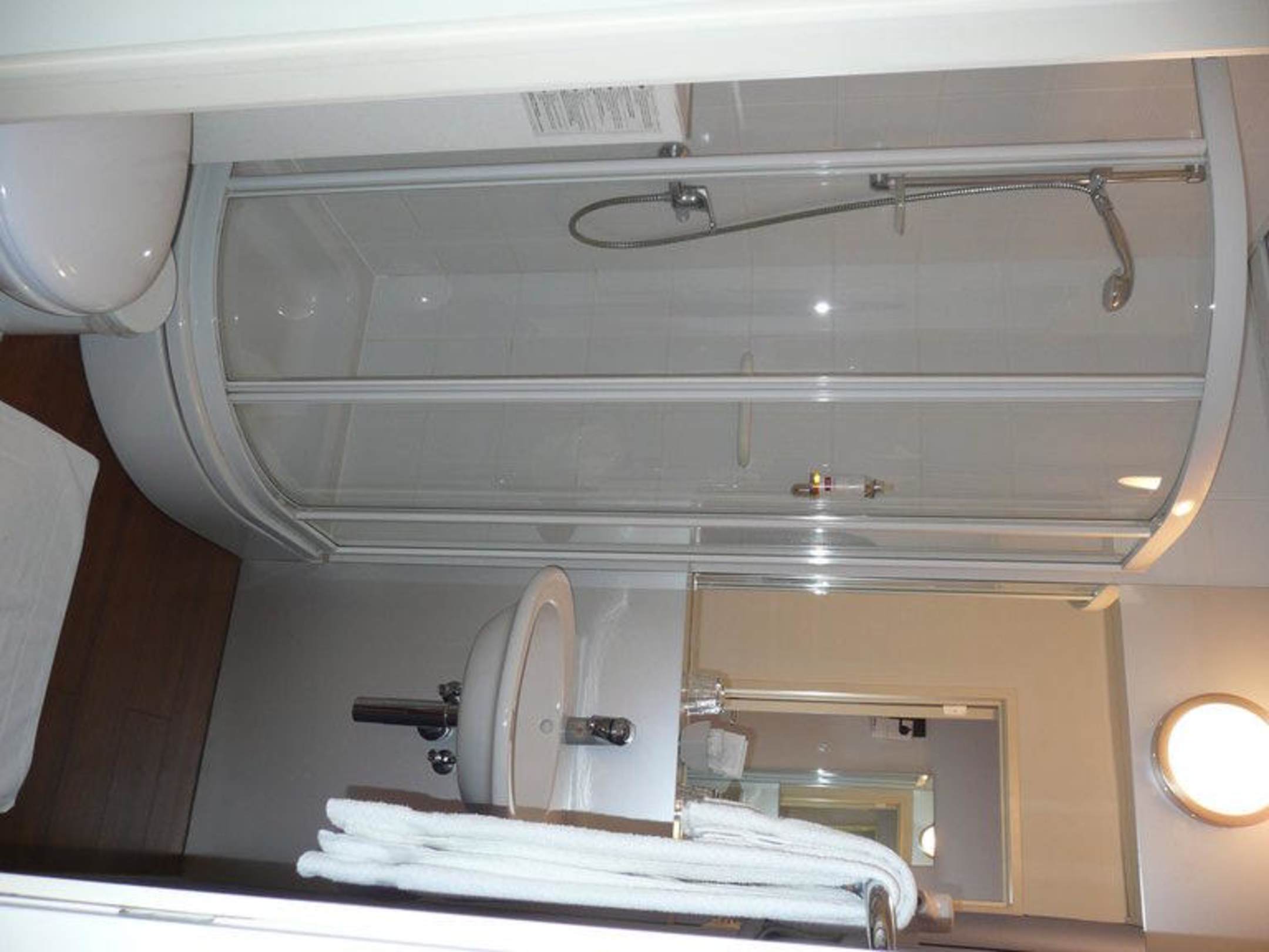 Bad Blick auf Dusche und Waschbecken