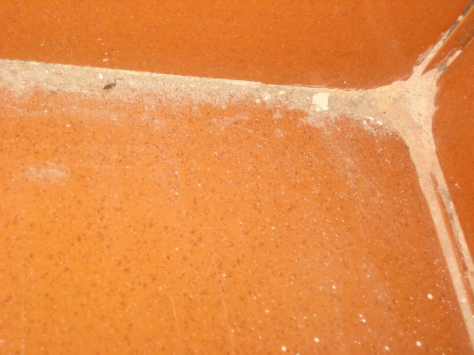 So dreckig und noch verfleckt war der Fliesenboden im Hotelzimmer