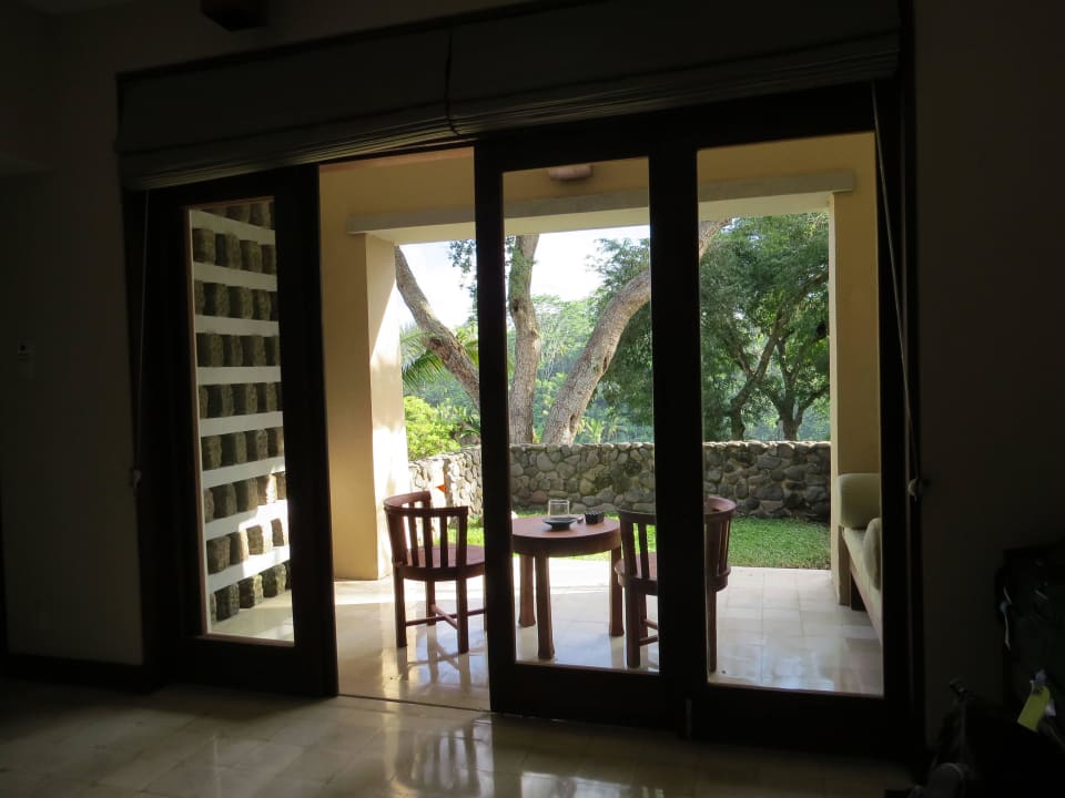 Blick vom Zimmer auf die großzügige Terrasse
