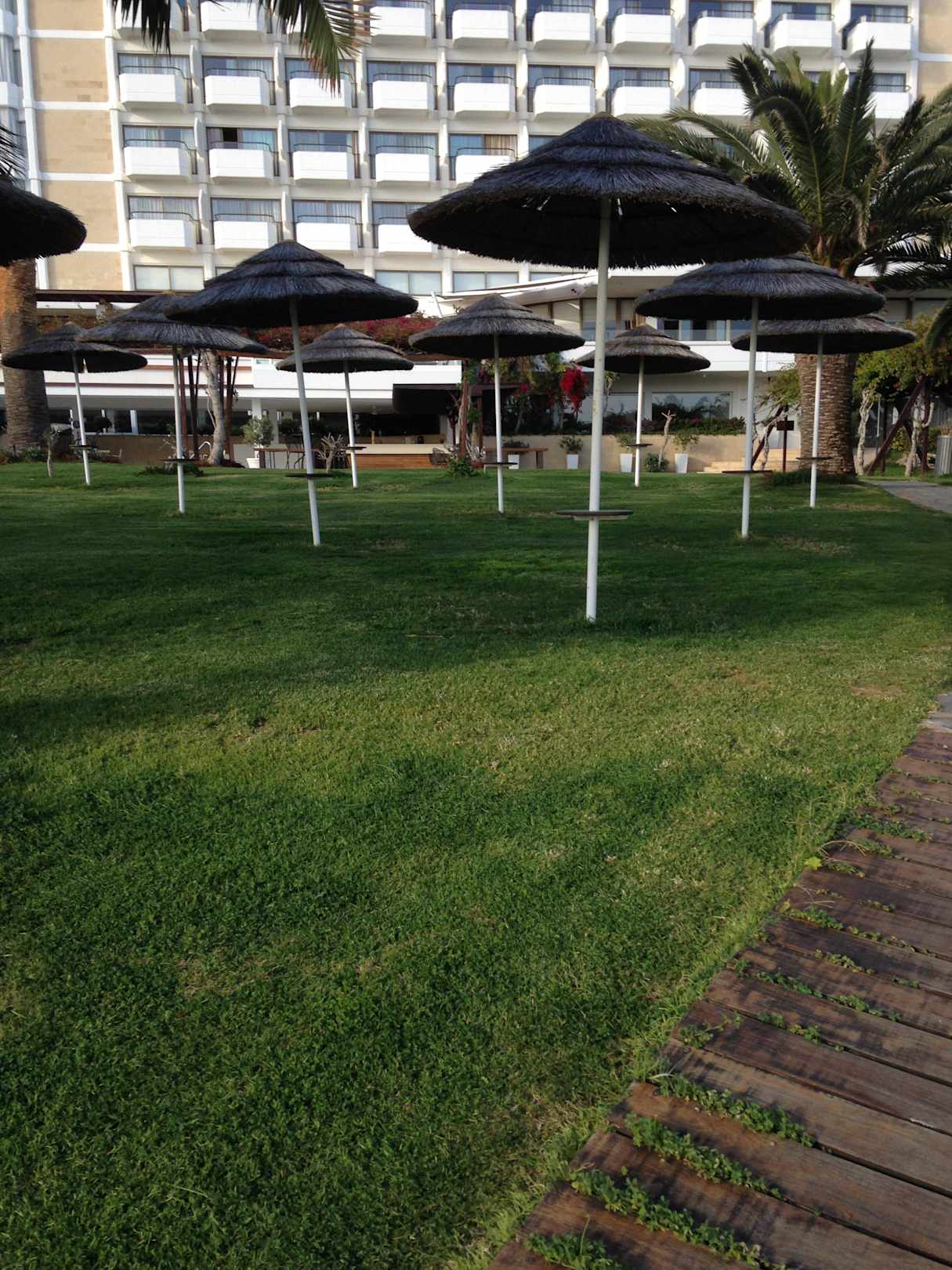 Blick vom Strandweg zu Hotel