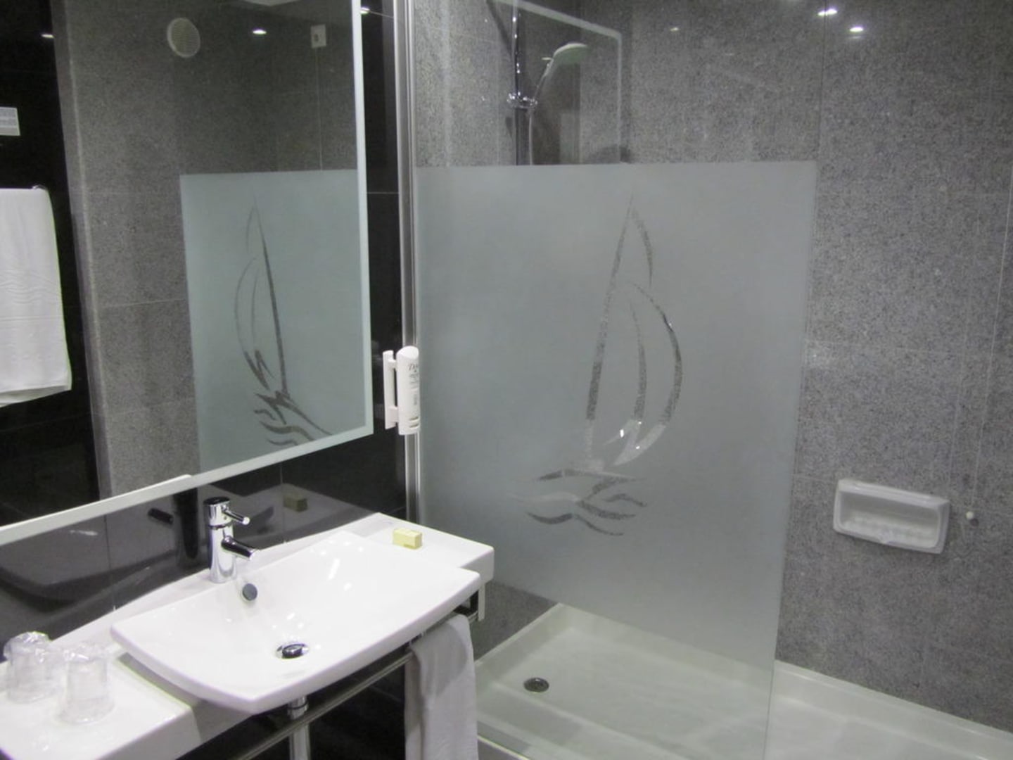 Superschönes BadezimmerDas Bad ist komplett aus Marmor und ein wirklicher Traum. Man beachte die große Duche :))