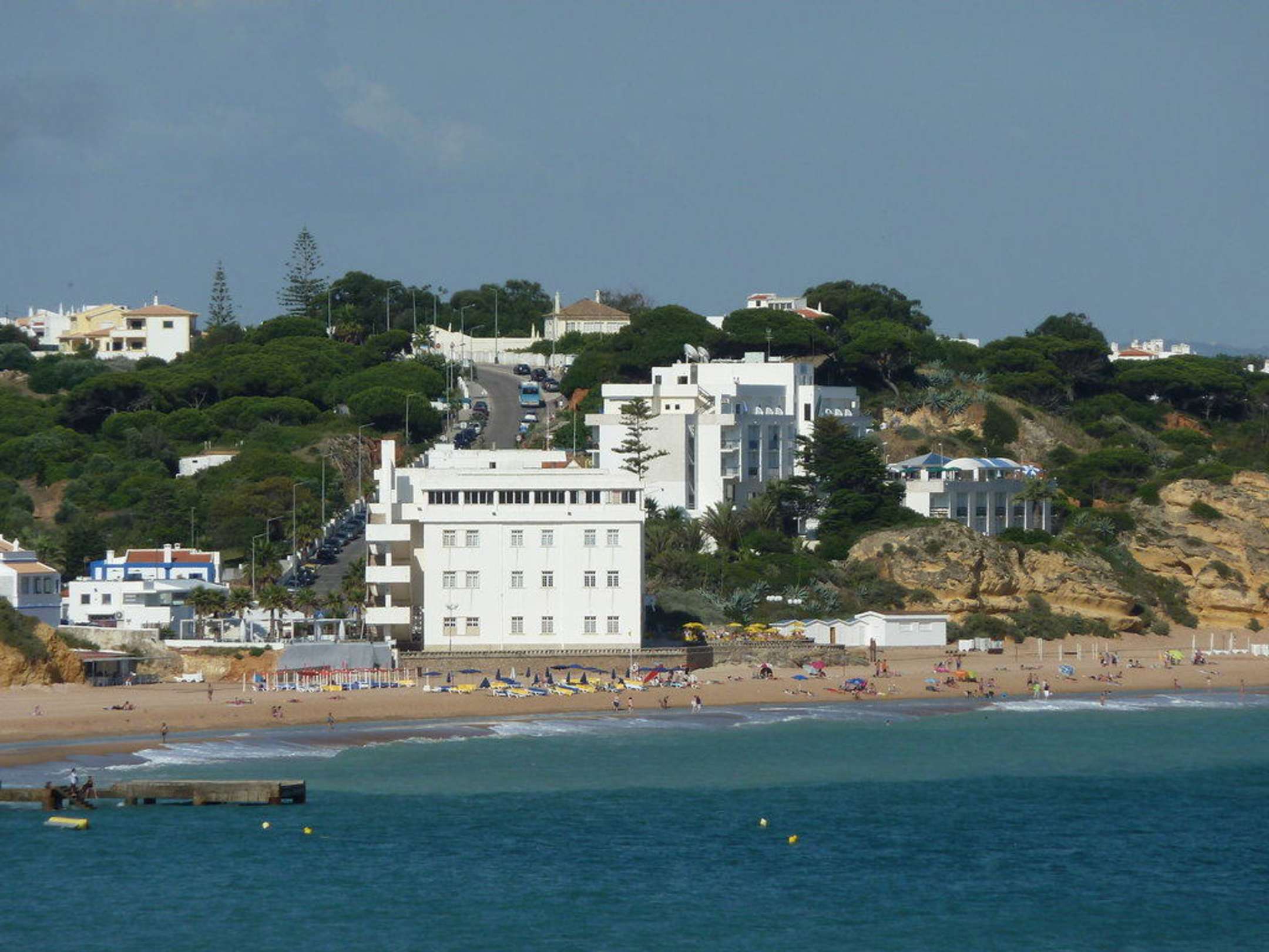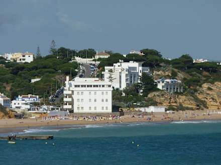 von einem Aussichtspunkt in der Altstadt Albufeiras habe ich das Hotel herangezoomt. Es ist das weiße Gebäude hinten rechts, davor liegt der dazugehörige flachere Bau mit Sonnenschirmen.