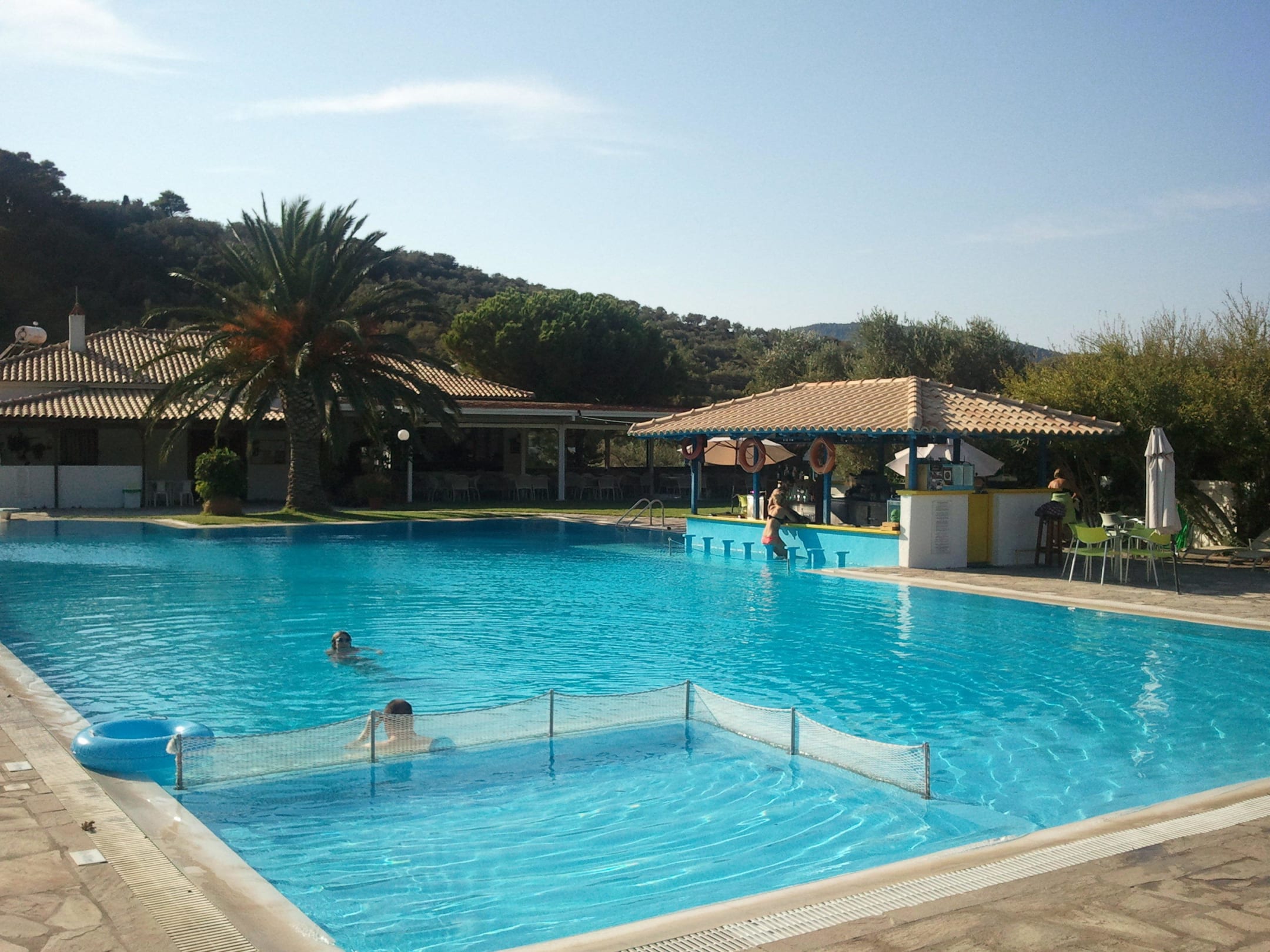 Pool mit Restaurant im Hintergrund
