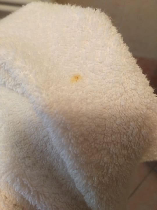 Verschmutztes Handtuch, wurde trotz Signalisierung nicht getauscht.