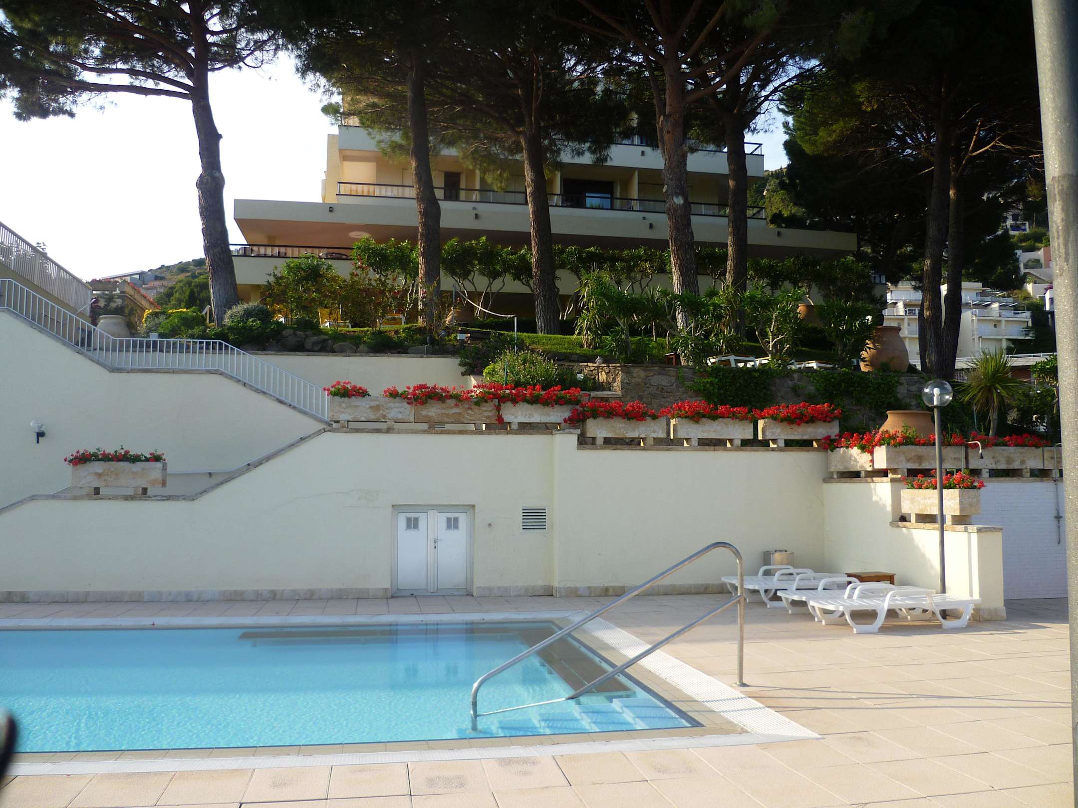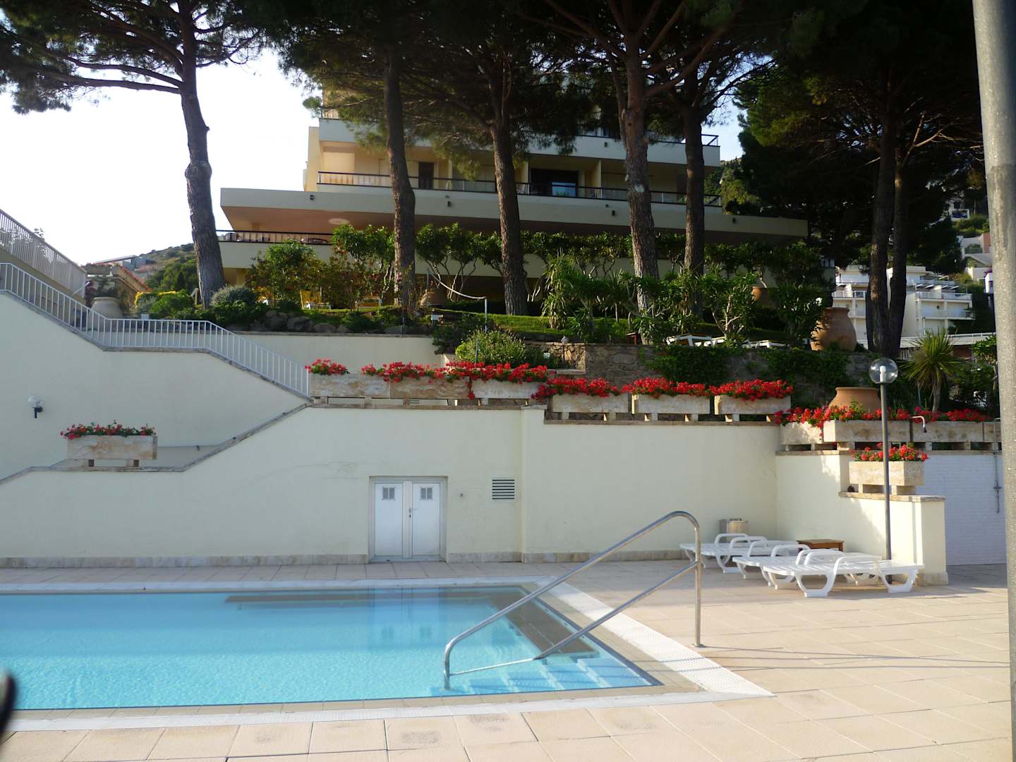 Blick vom Pool aufs Hotel