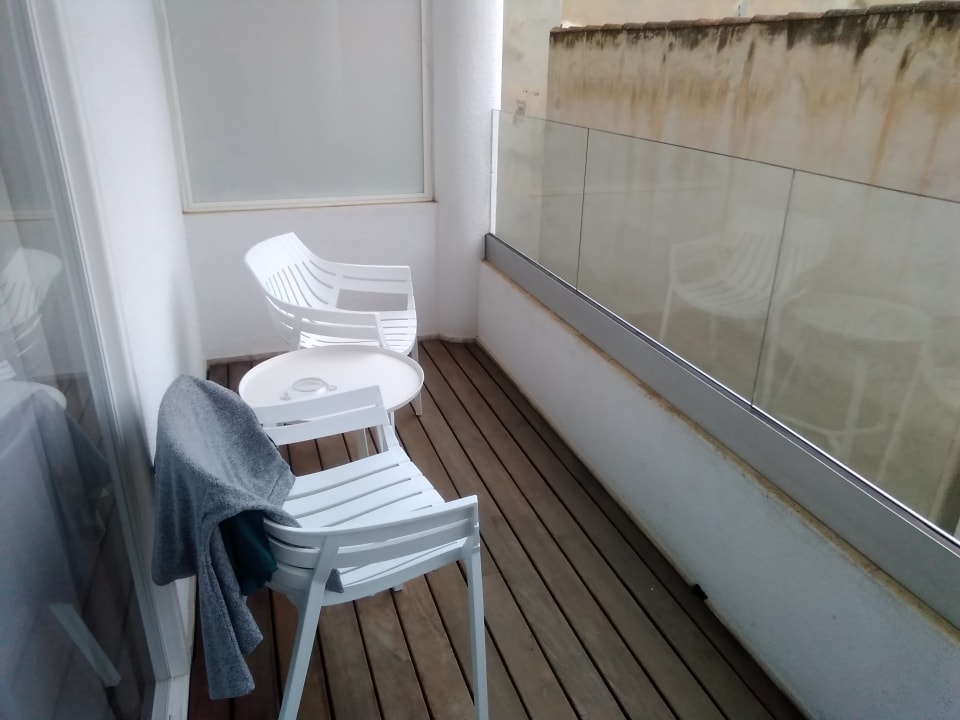 Balkon mit Tisch und Stühlen aber ohne Wäschetrockner.