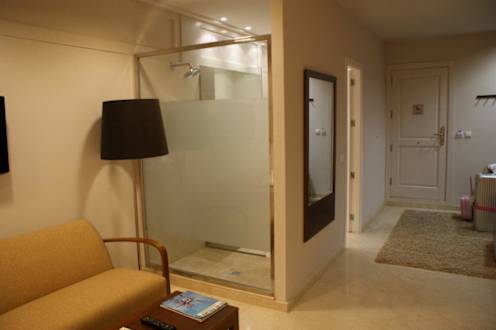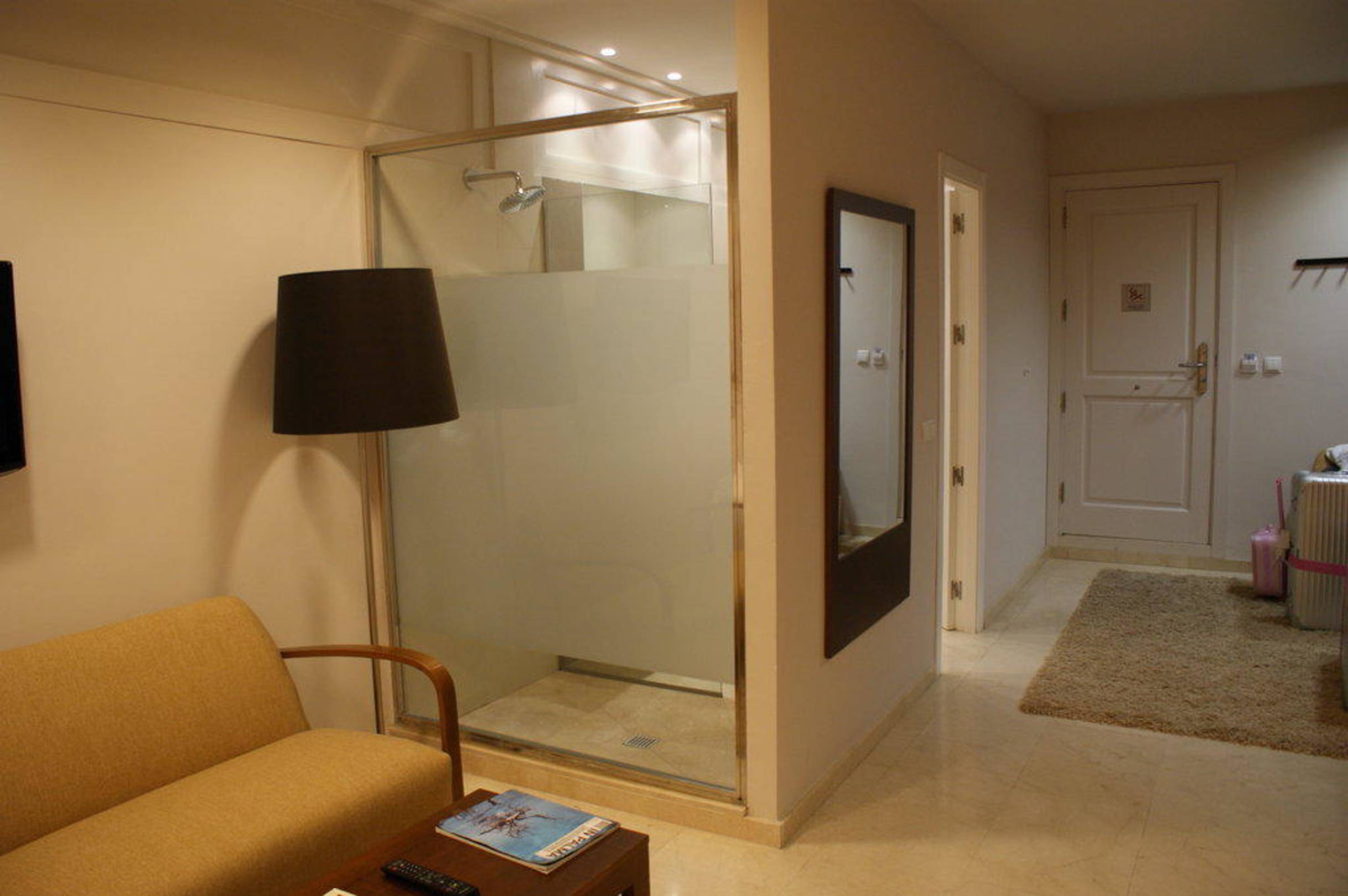 Blick Richtung Trennwand zum Duschbad im Zimmer 804 im Hotel Almudaina