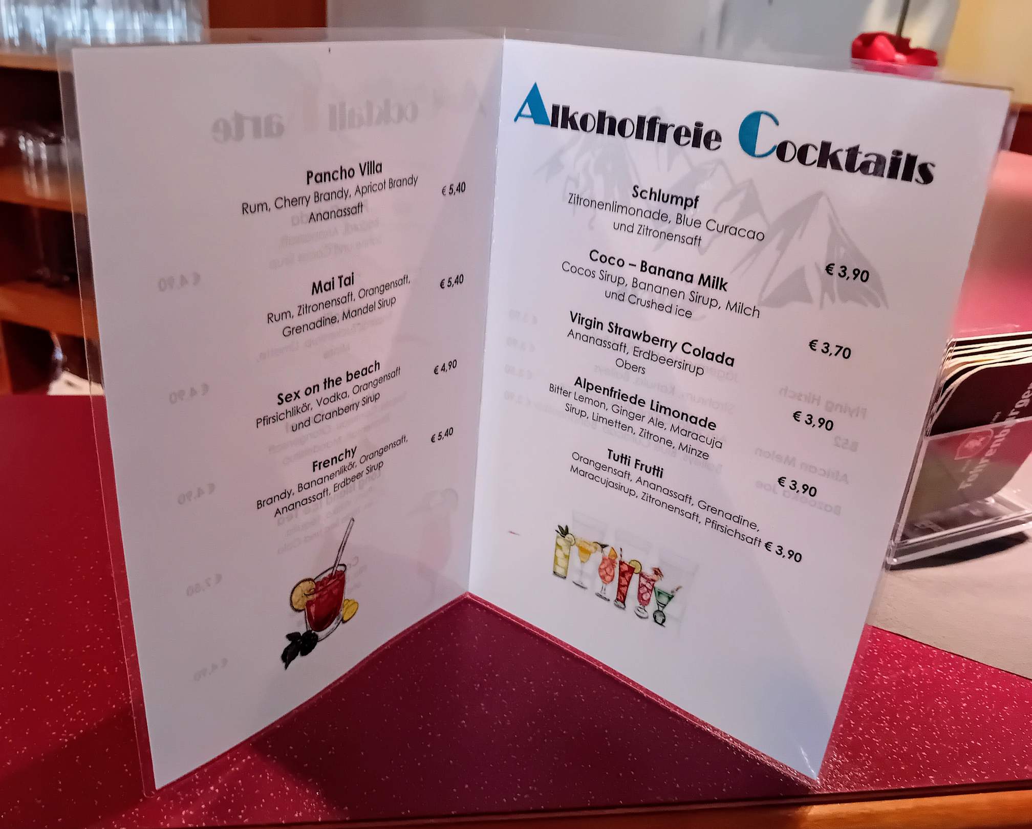 Die Cocktailkarte vom Hotel.