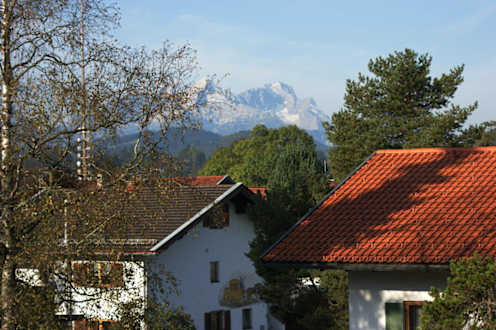 Ausblick von unserem Balkon Zimmer Nr. 19 Richtung Alpsitze / Zugspitze