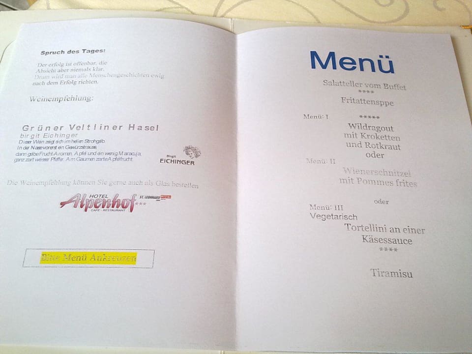 jeden Morgen gab es eine neue Menükarte