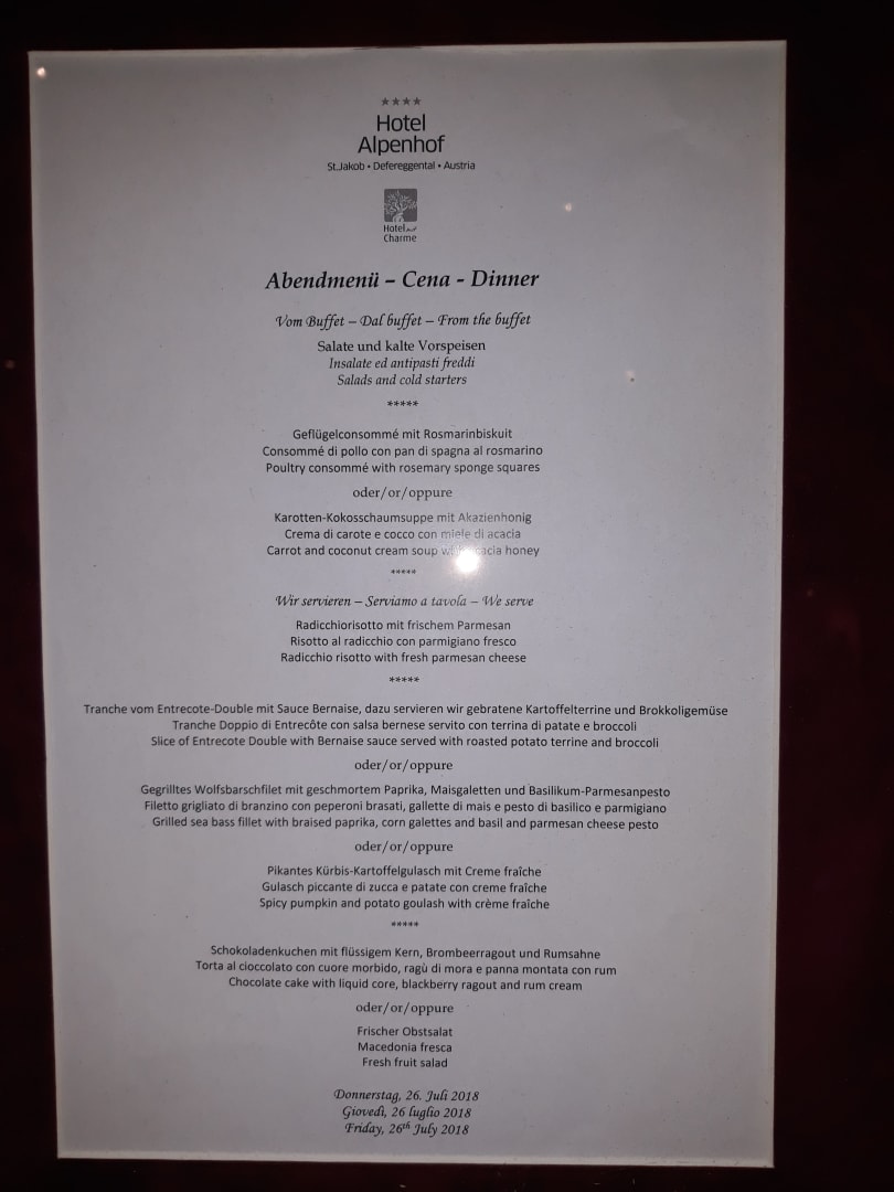 Speisplan zur Auswahl beim Frühstück für das Abendessen bei All Inclusiv