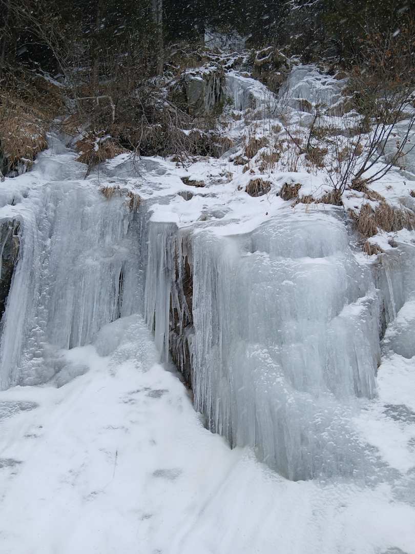 Eisskulpturen auf dem Wanderweg nach Tögisch