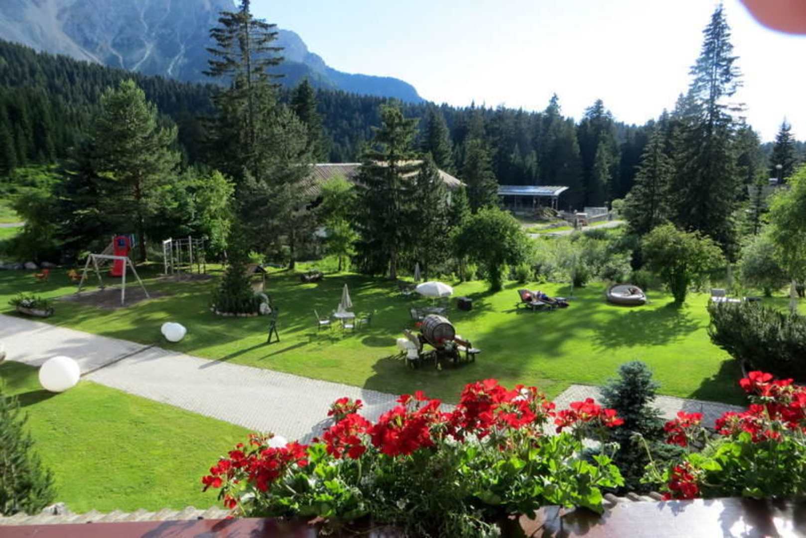 Blick vom Balkon auf den Garten