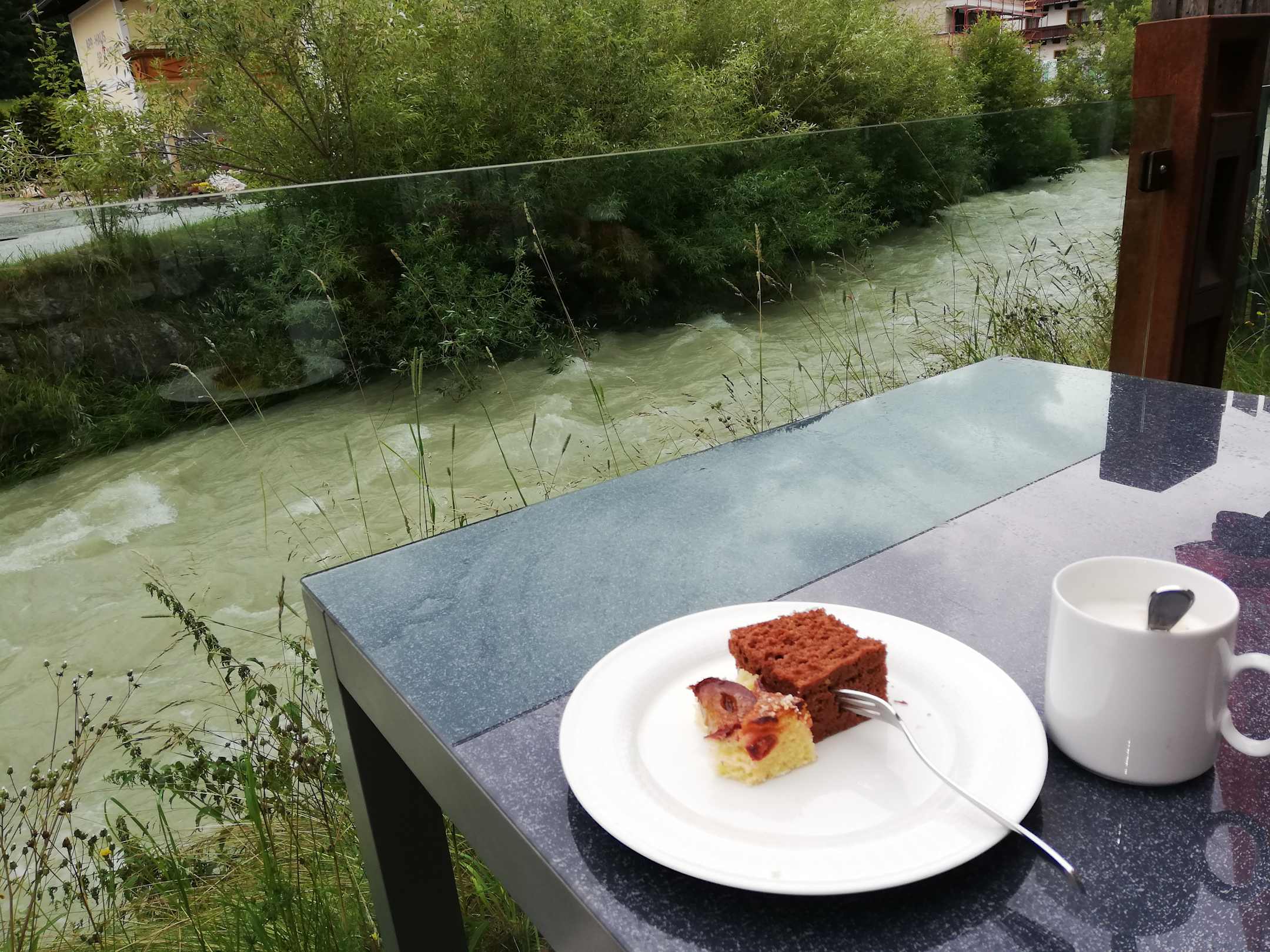 Hinterm Haus die Terrasse an der Enns