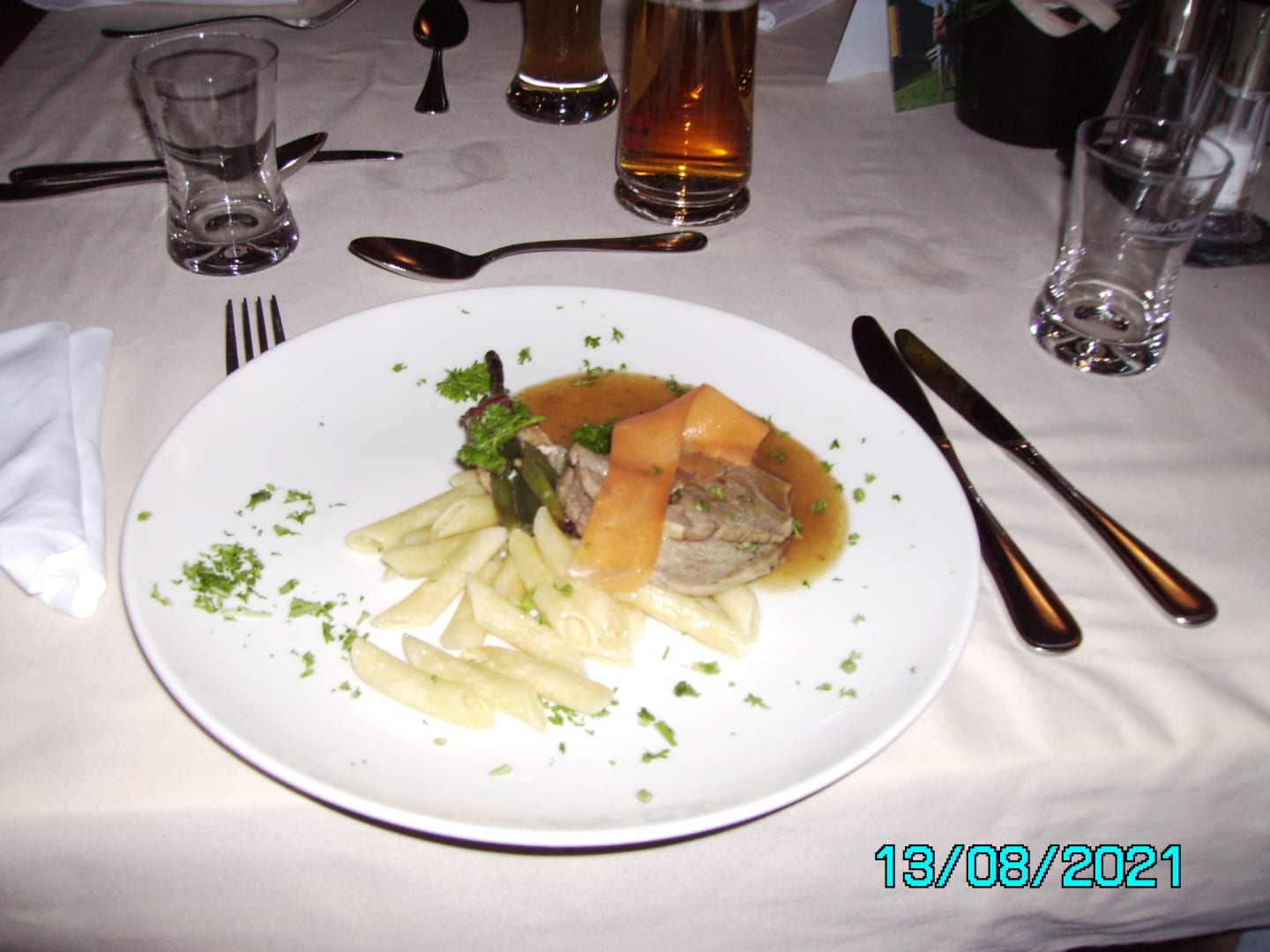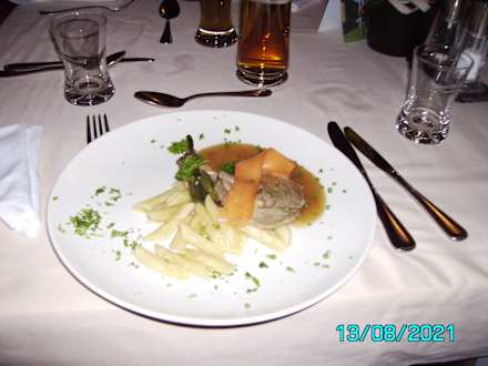 Kalbsrollbraten mit Sonderwunsch Teigwaren am Abend