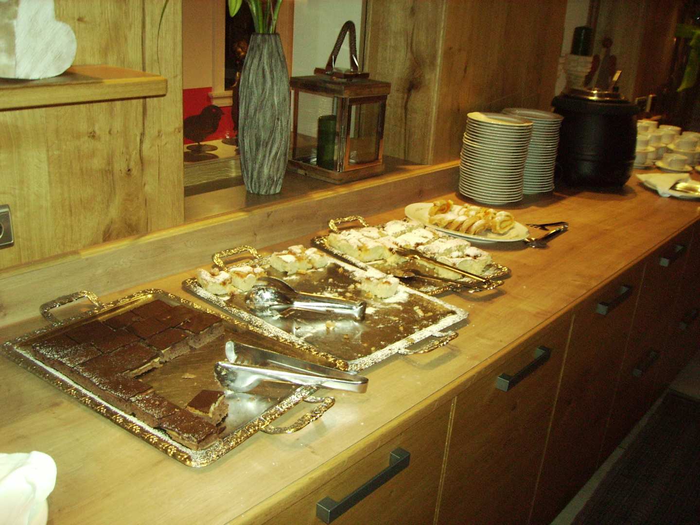 Leckeres Kuchen Büffet mit Suppen Topf am Nachmittag