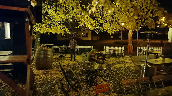 Biergarten Hotel Alte Schule im Herbst