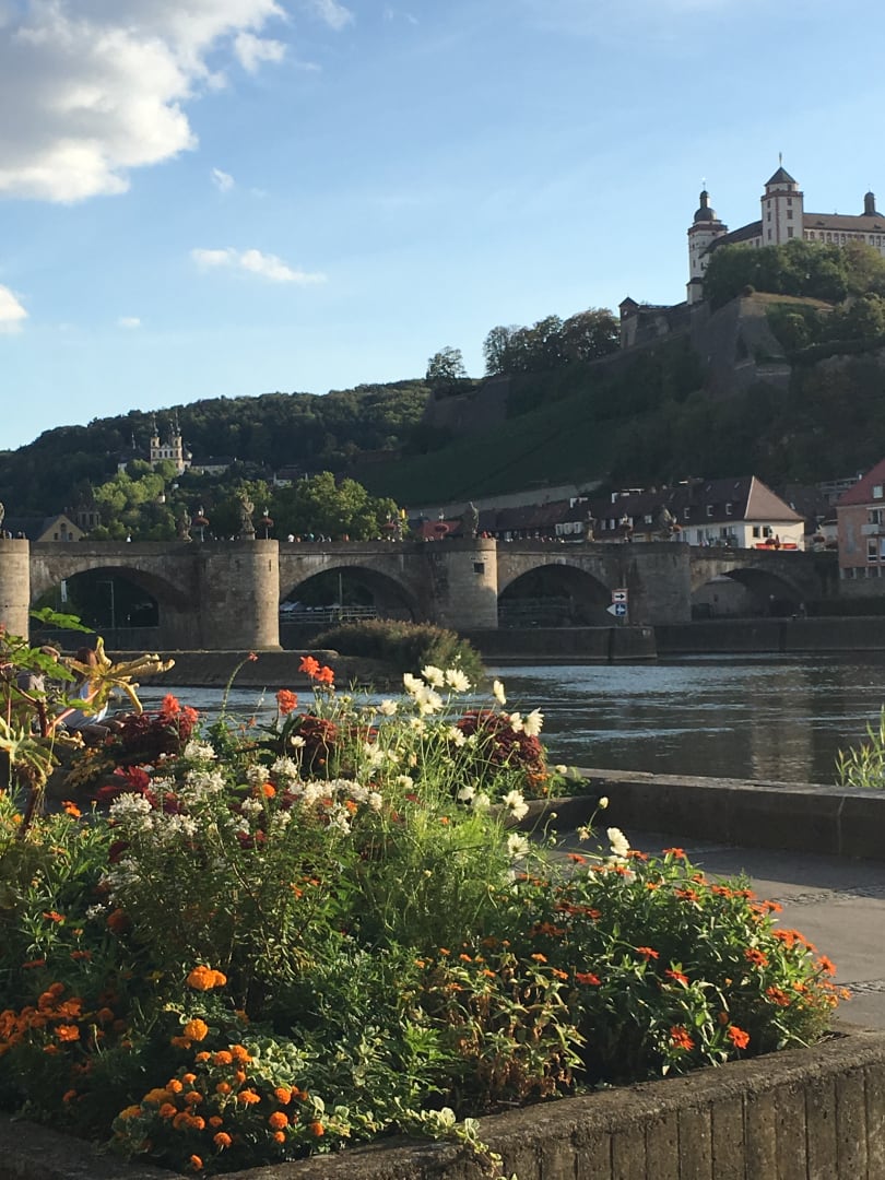 Blick von den Bänken direkt am Main vor dem Hotel