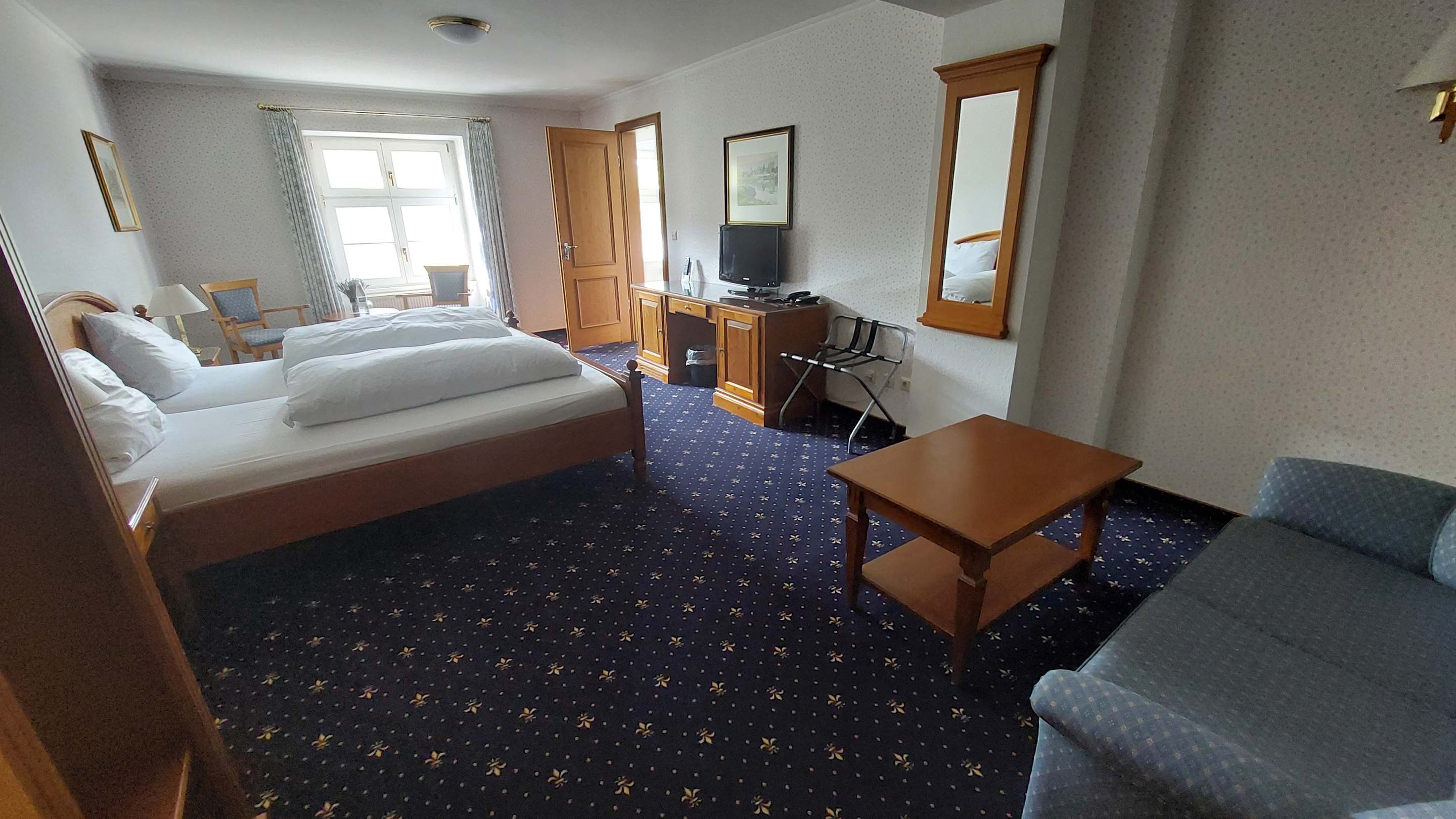 Alles top sauber. Vom Fenster schaut man auf die Fulda und die Insel Tanzwerder.