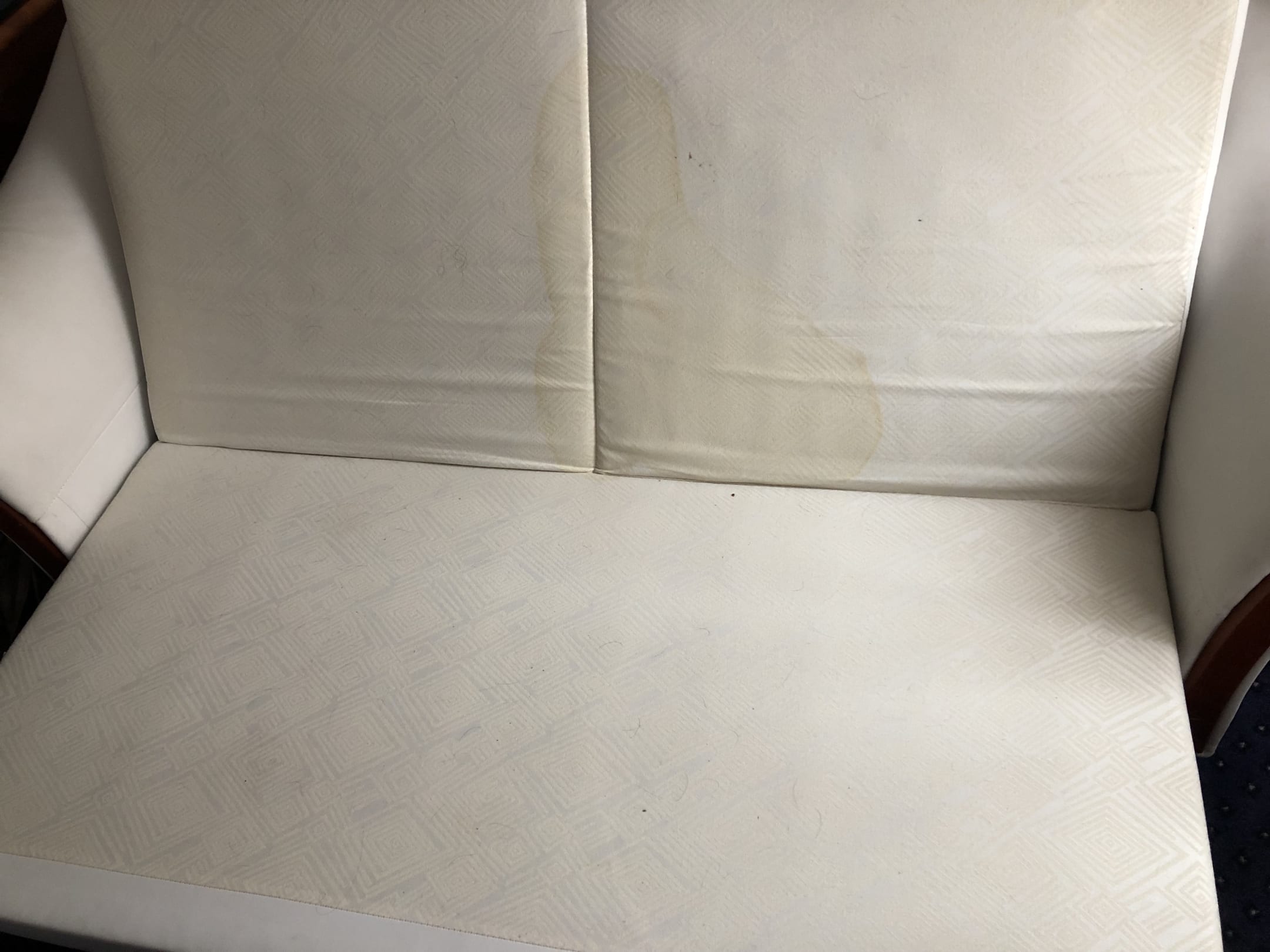 Hundehaare und wahrscheinlich Urinflecken auf dem Ausziehsofa