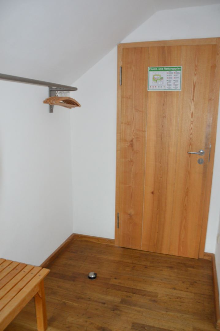 Eingang von unserem Zimmer mit Garderobe