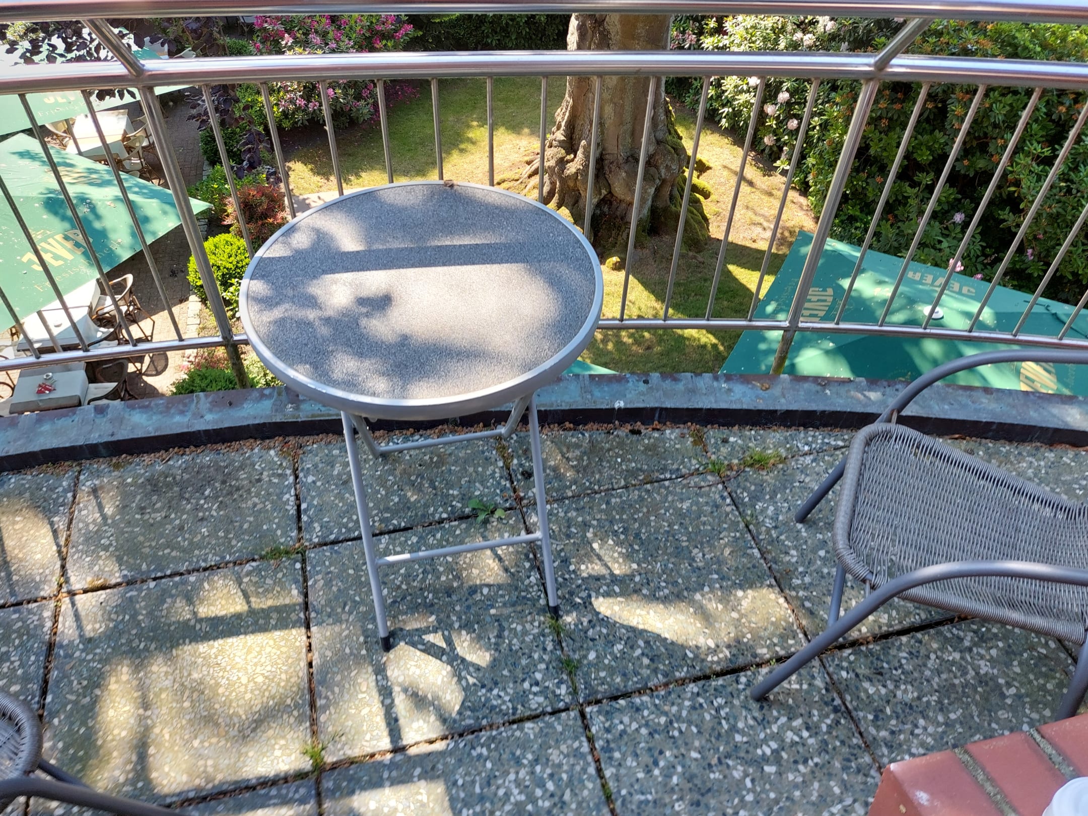 Unser kleiner Balkon mit Blick in den Biergarten