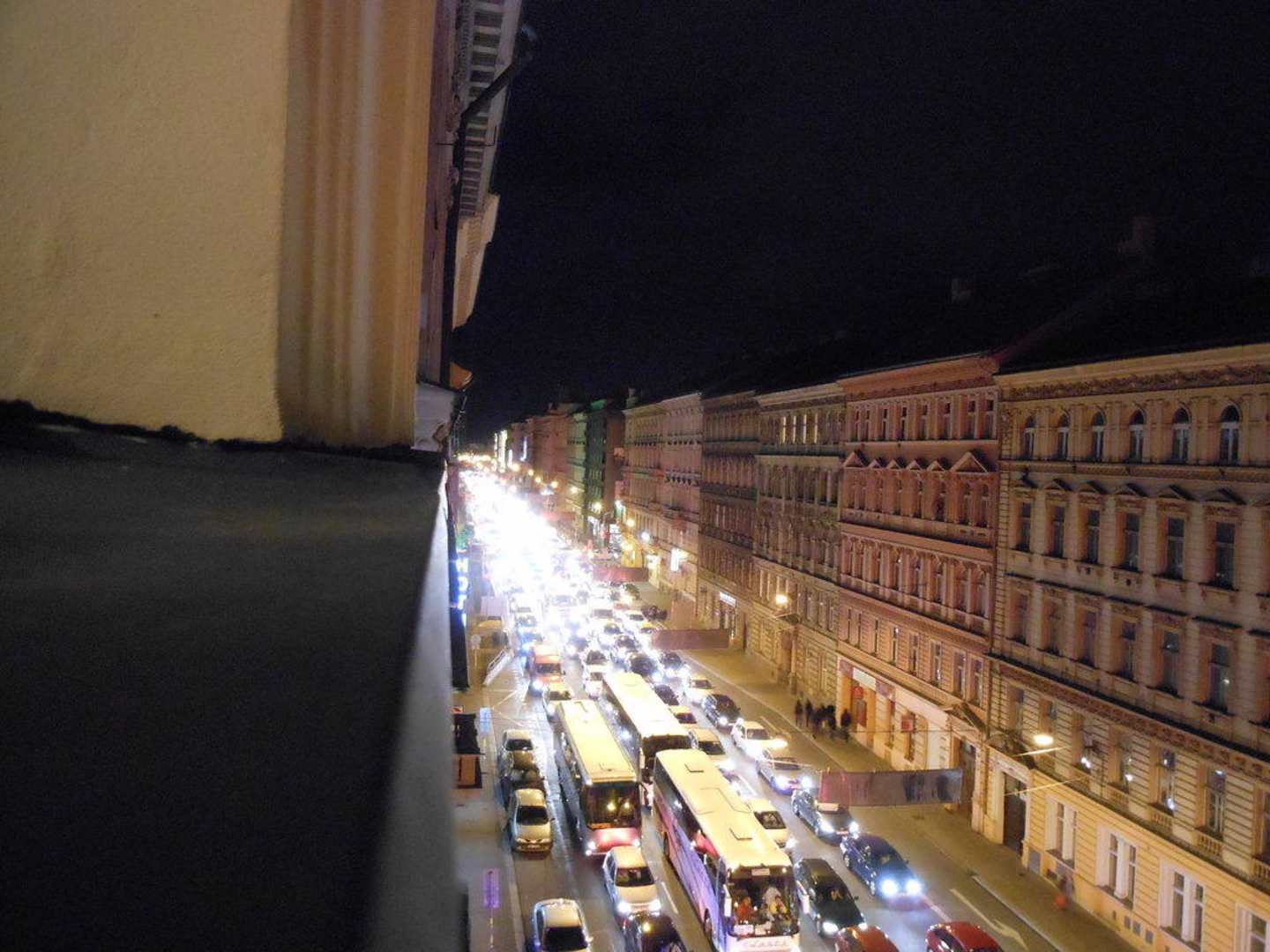 Blick aus dem Fenster des Hotels auf die volgestopfte Strasse während Stosszeit.