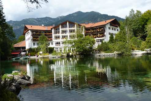 Blick über den Badersee zum Hotel